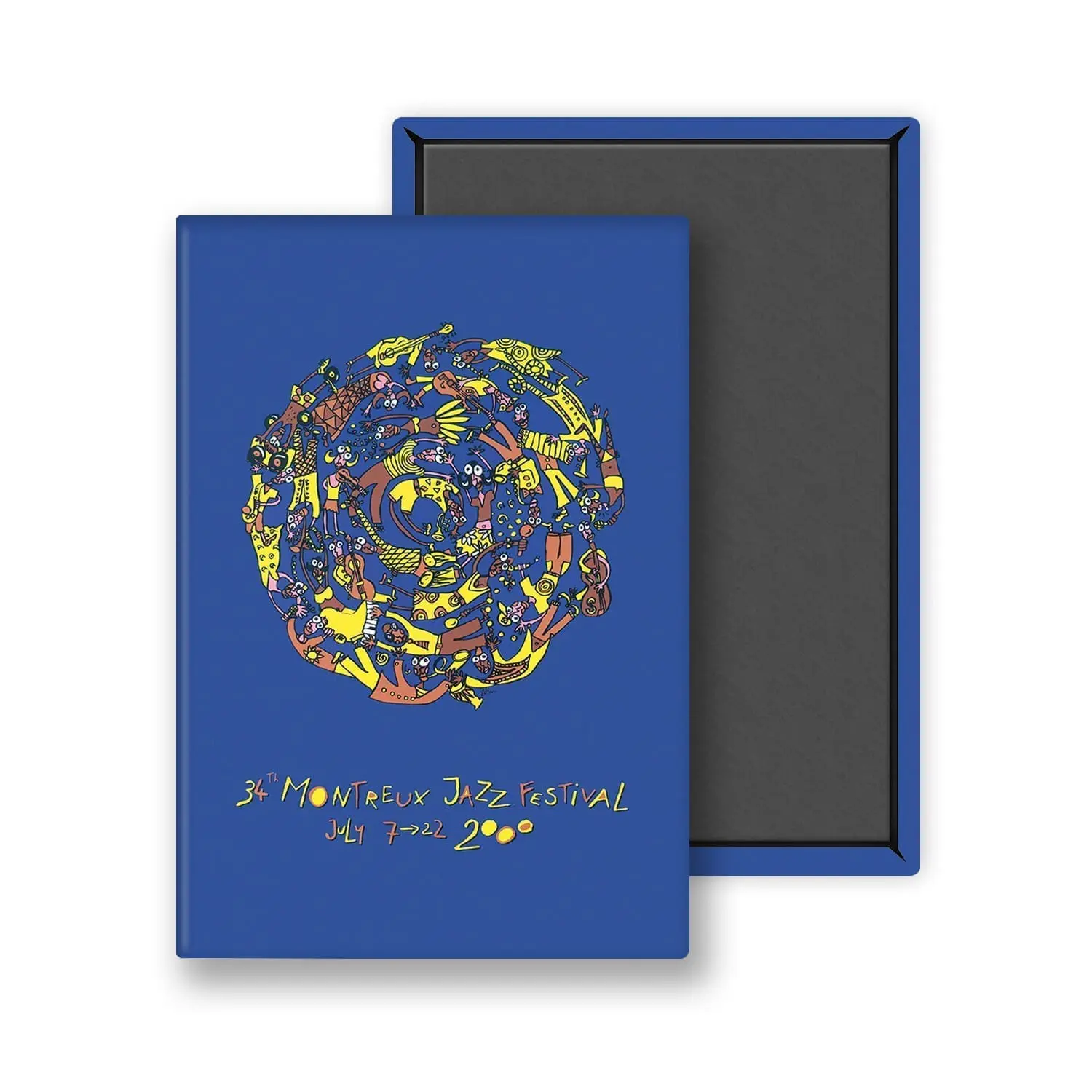 This magnet is part of the Albin Christen collection. Albin Christen is still an unknown when this poster for the 2000 edition is unveiled. But the 25-year-old graphic designer from the canton of Vaud had not yet made his debut. Three years earlier, just out of graphic arts school, he had proposed a poster project at the Montreux Jazz Festival, which was rejected at the time.