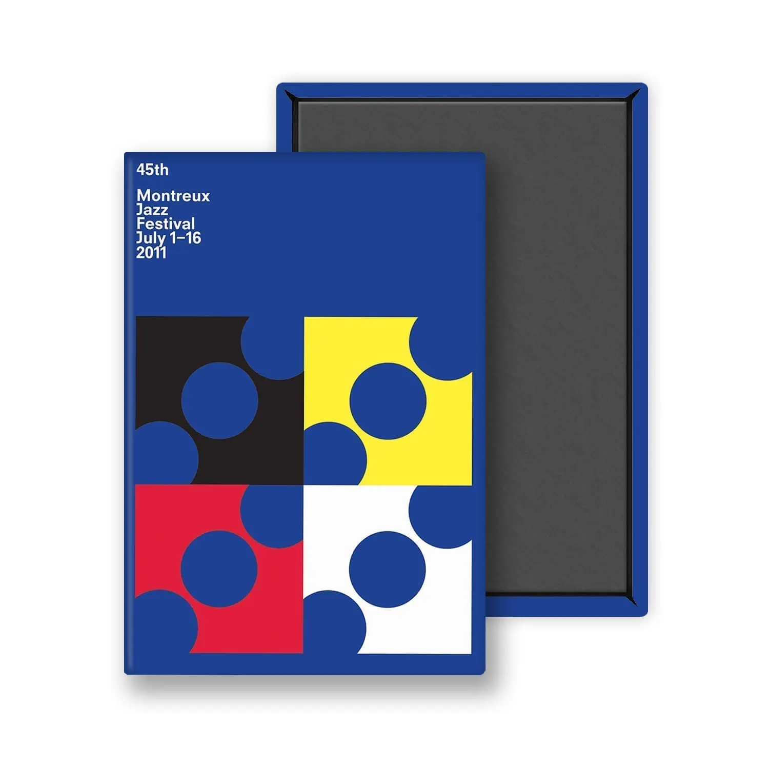 This magnet is part of the Francis Baudevin collection. It is to a music lover, the Lausanne-based artist Francis Baudevin, that Pierre Keller entrusted the creation of the poster for the 45th edition. Baudevin seizes the commercial graphic landscape to create geometrical paintings.