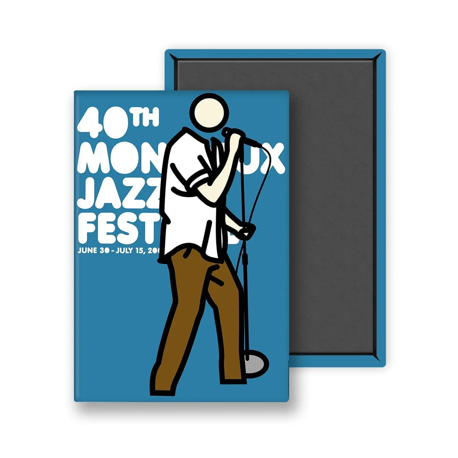 This magnet is part of the Julian Opie collection. For the 40th edition of the festival, British artist Julian Opie is using his icons on the three versions of the festival poster that make up the rock band Deep Purple. The British artist has created visuals for a U2 tour and portraits of Blur members for the cover of their Best of released in 2000.