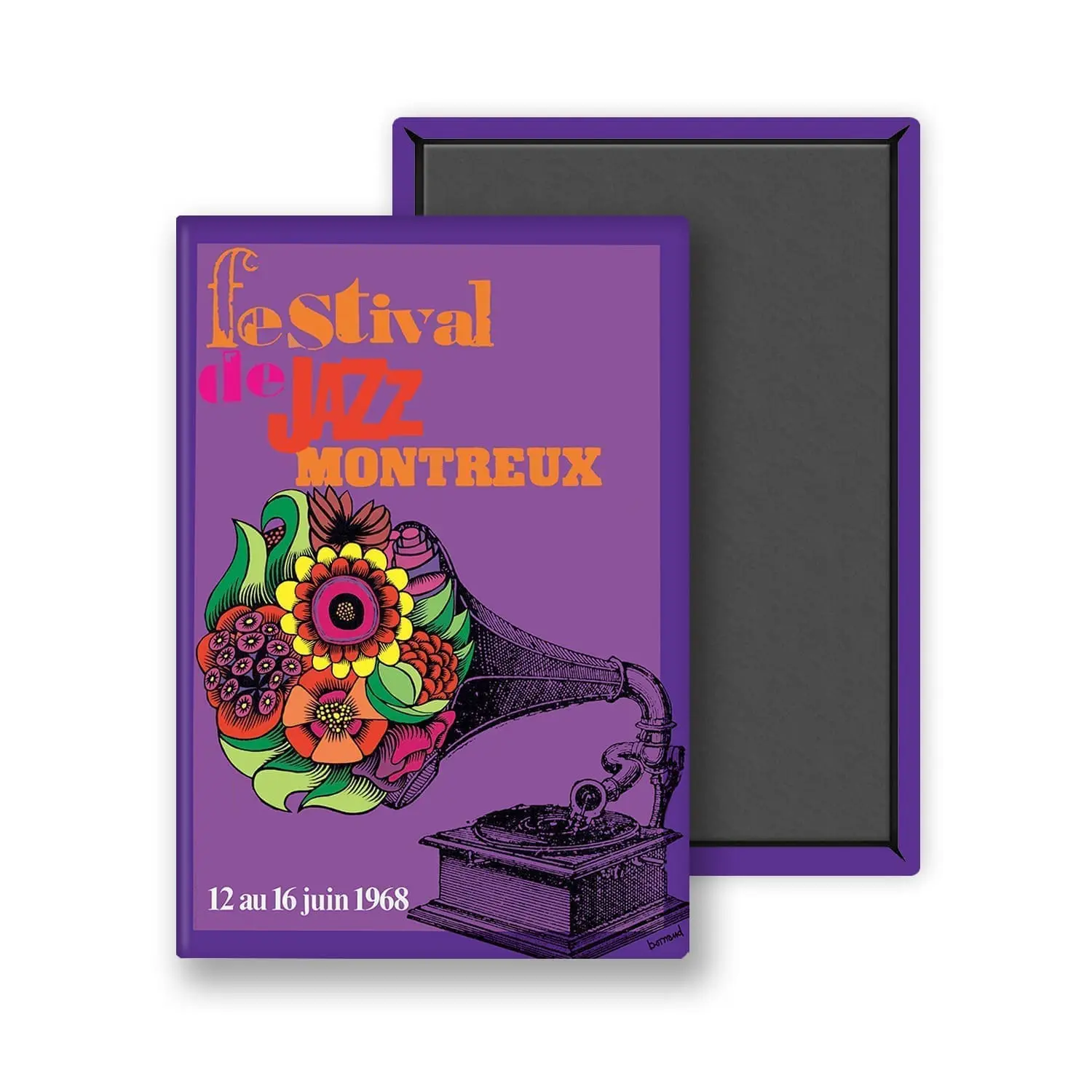 This magnet is part of the Roger Bornand collection. For the second year of the Festival, which followed the Summer of Love, up-and-coming Montreux graphic designer Roger Bornand, a close friend of founder Claude Nobs, drew the poster. He later teams up with Bruno Gaeng, who creates within the agency 3 other posters for the Festival (1971, 1974, 1975).